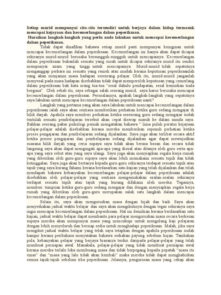 Langkah Langkah Untuk Mencapai Kecemerlangan Dalam Peperiksaan Contoh Pdf